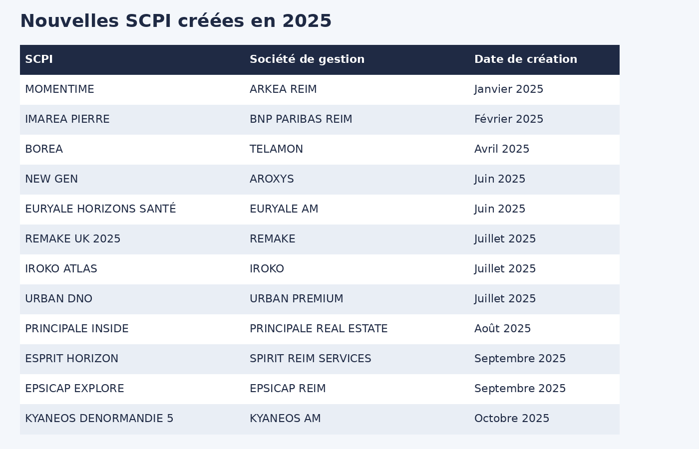Quelles sont les nouvelles SCPI qui ont été créées en 2025 ?